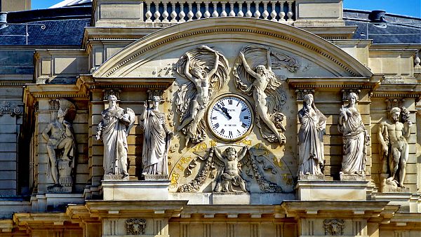 Барельеф центрального фронтона украшен скульптурами богов античного Пантеона: Марса, Афины, Геры, Диониса и пр.