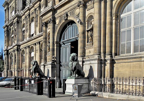 Боковой вход в парижскую ратушу, расположенный в одном из павильонов, дополнен двумя скульптурами львов – символов власти, а также множеством дорических полуколонн и скромными карнизами – типичными деталями для неоклассической архитектуры.