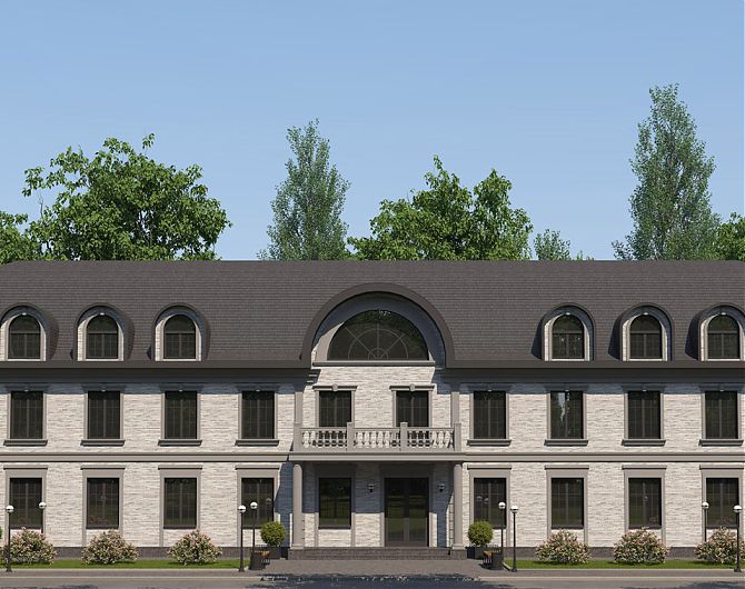 Центральный фасад двухэтажного административного здания